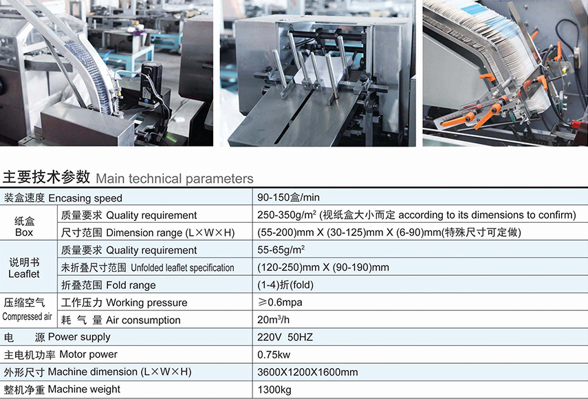 本產品是我公司結合國外裝盒機的先進技術及根據國內制藥行業的實際情況而研發的擁有新型、具有先進的多功能中速自動裝盒機,是目前最適合實際生產能力的新型設備,是機、電、氣光一體化的高科技產品。本產品適用于鋁塑藥板、瓶、口服液、鋁/塑管、面膜、及各類電子、日用品等以及相類似物品的裝盒包裝,具有自動完成使用說明書的折疊、紙盒自動打開、物品裝盒、打印批號,封盒等功能。該機可以單獨使用亦可以與其他設備聯動使用,形成聯動生產線。